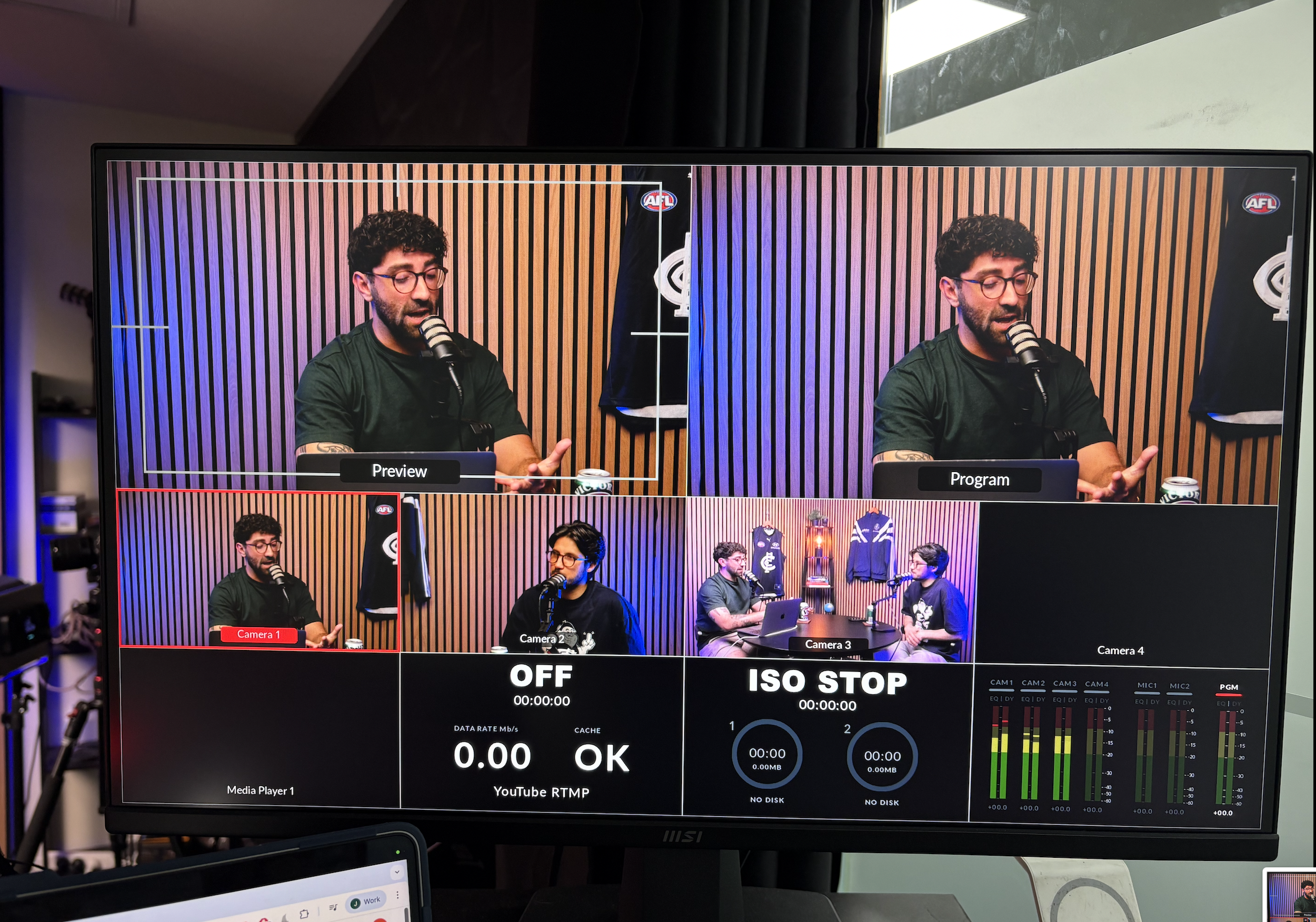 Ideal for YouTube streams and live camera cuts, this device is the ultimate brains trust behind every professional podcast. Just bring your laptop logged into whatever streaming platform you use and we will configure the settings! We also use this to take photos to show you the framing and colours so that you’re always 100% satisfied.