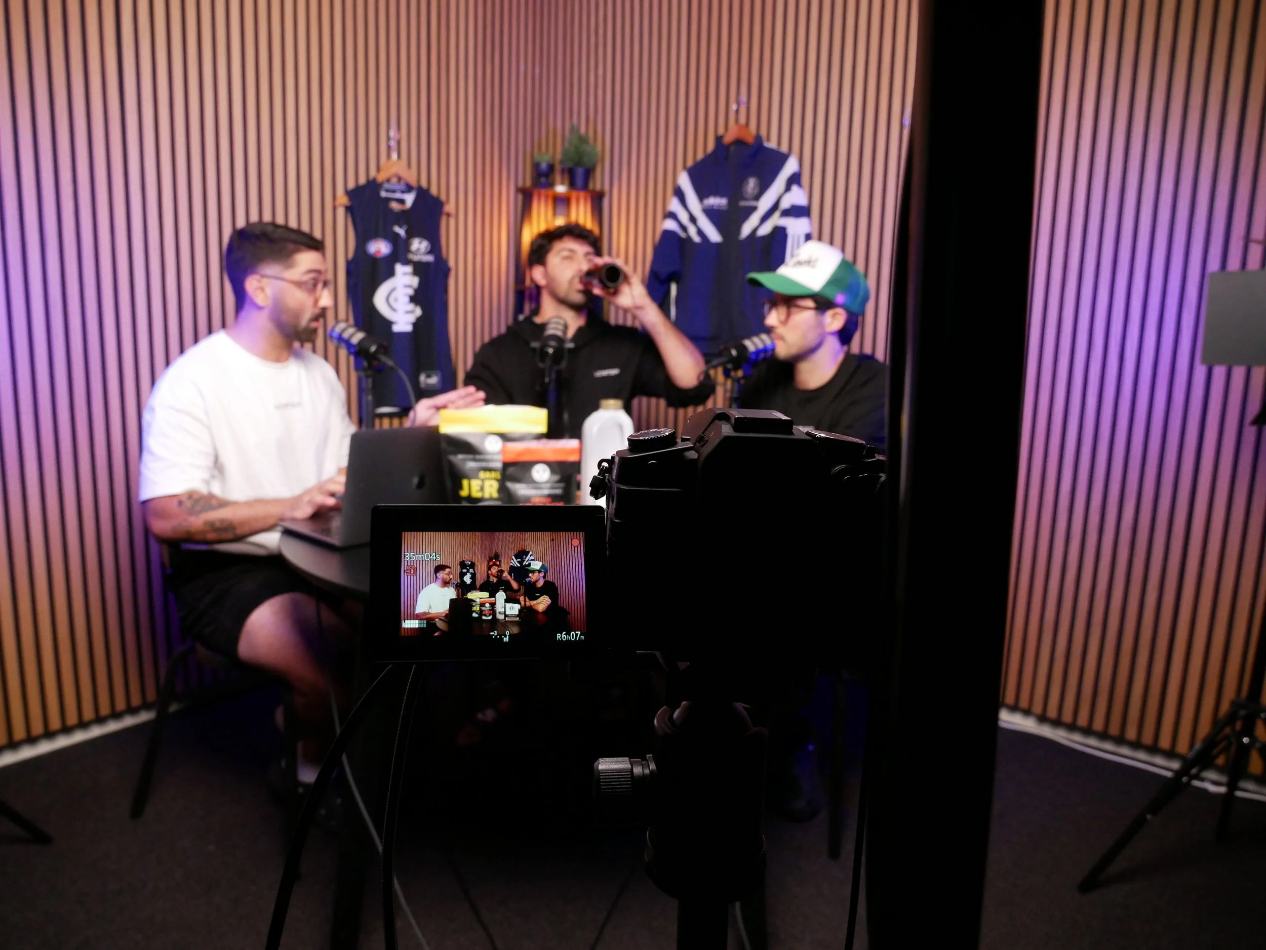 Our Melbourne podcast studio caters for up to 2-4 guests across a wide variety of niches. The scene can be customised with your own lighting, merchandise, sponsor props and anything else to make the space truly your own.